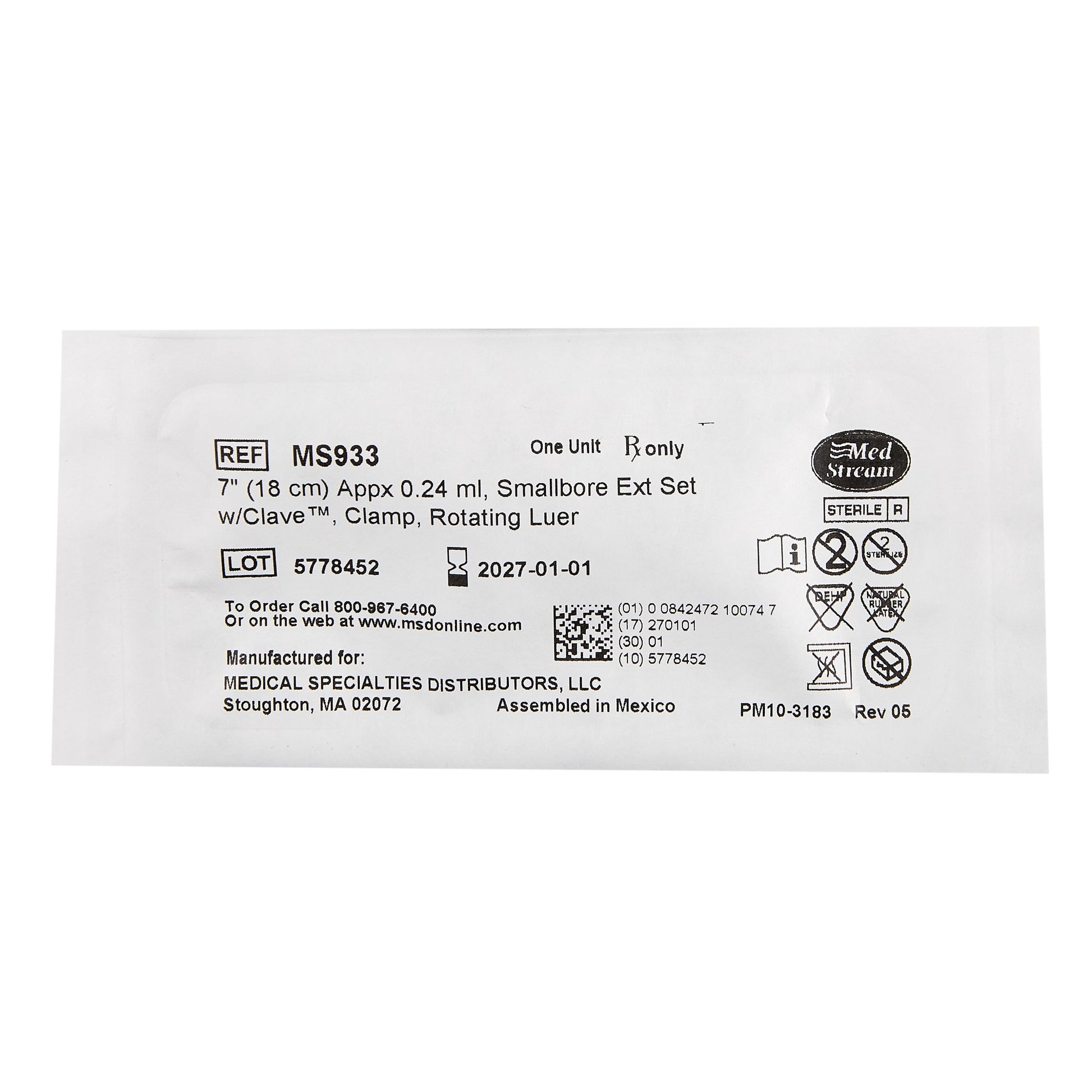 IV Extension Set McKesson Needle-Free Port Small Bore 7 Inch Tubing Without Filter Sterile