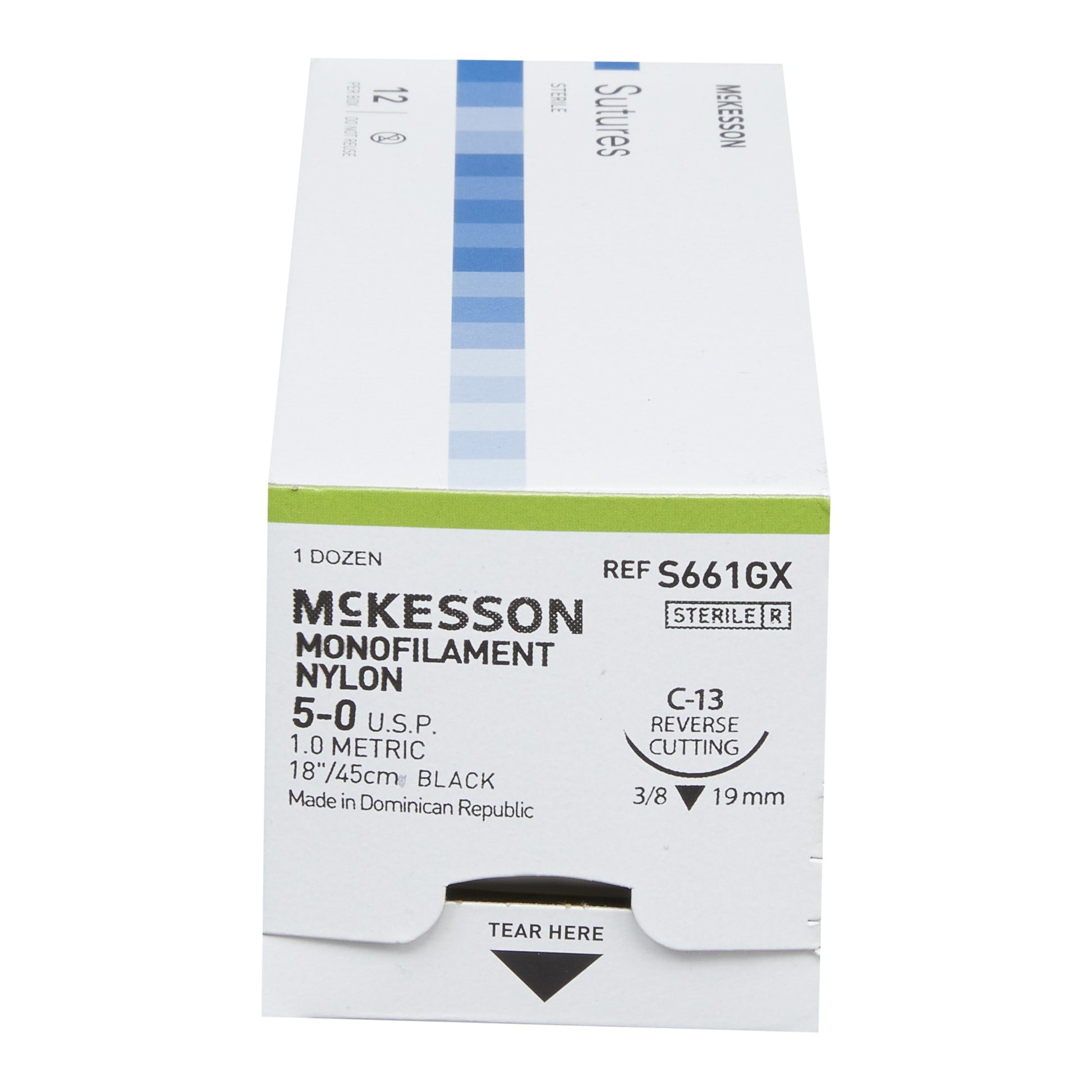 Nonabsorbable Suture with Needle McKesson Nylon C-13 3/8 Circle Reverse Cutting Needle Size 5-0 Monofilament