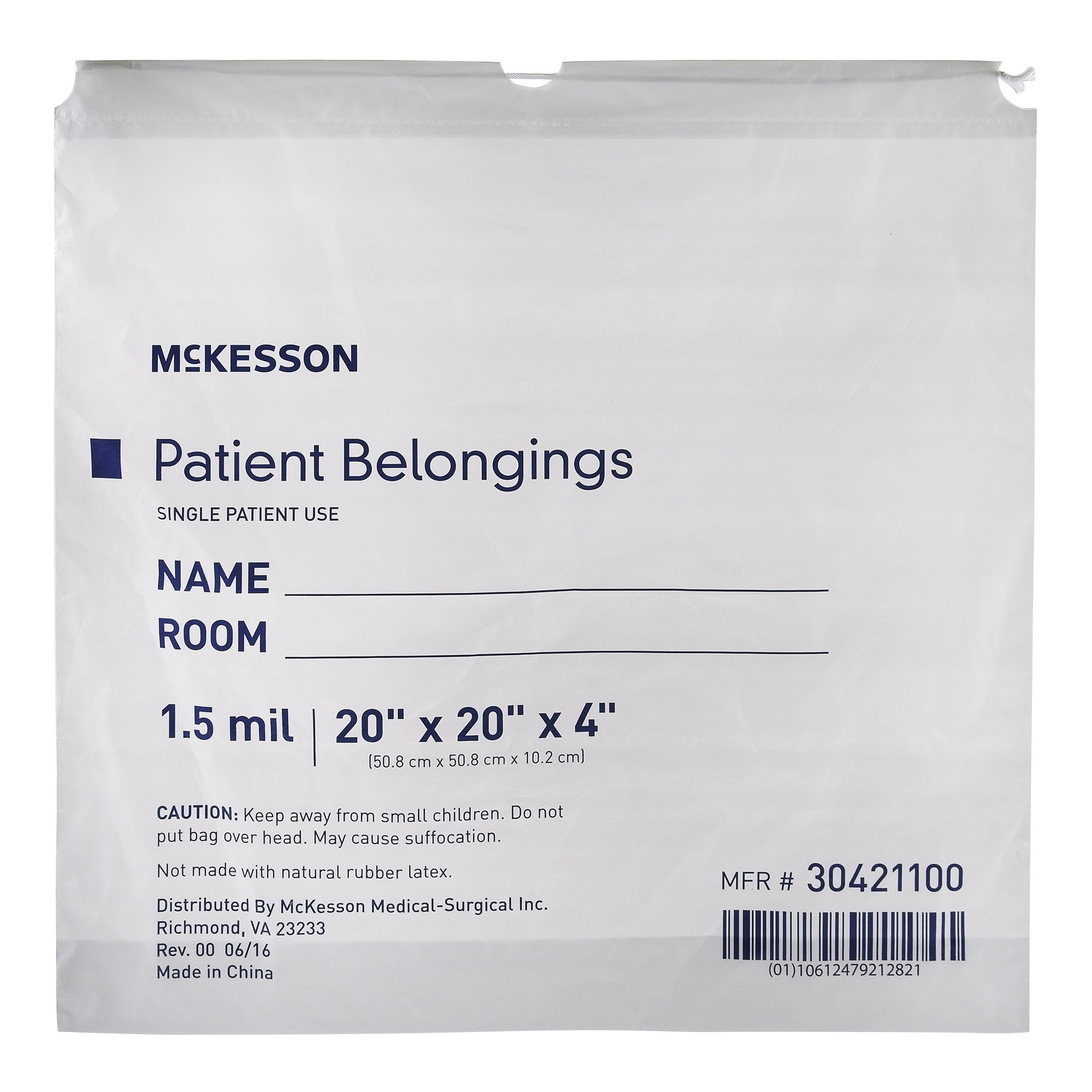 Patient Belongings Bag McKesson 4 X 20 X 20 Inch Polyethylene Drawstring Closure White